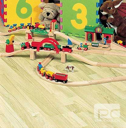 可爱的火车模型 奔驰在“高架的城市道路”上 孩子的发明创造能力不可估量 20平米以内的房间采用地板条 更具有生机活力 否则,会有凌乱的感觉