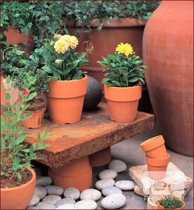 用木板支撑起一个花园平台,放若干小花盆,前面摆色彩艳丽的花,后面种些高大植物,极具特色的角落就形成了。随着花草的不断生长,整体形状会发生变化,如果你想维持原来的样子,就要修剪枝叶了。