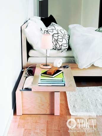 谁都希望自己有一个看起来十分清爽的床头,但问题是,当我们靠在床上看书或者看电视时,经常需要很多可以随手取用的小东西,比如书、纸巾……诸如此类。解决方案很简单:为你的床头配置一个具有良好收纳功能的床头柜,像这个滑盖的床头柜就很棒,可以把有碍观瞻的杂物收得一干二净,而且随用随取,十分方便。 [page]