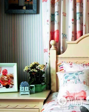 床头用色一定要注意有简有繁,如果床跟床头柜都是白色或者其他浅色调,那就最好选用花色稍微丰富一些的床品作点缀,以免过于平淡,在床头柜上摆放一些小饰品也是一个不错的选择,既点缀床头,还可以用来收纳。 [page]