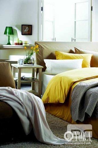 有时你也会渴望把外面的绿意带入家中。换一床嫩黄浅绿的床品可不够,最好在床头放上一束鲜花,哪怕香梦沉酣,也能跟绿意相伴。用花卉点缀床头的要点还包括,最好选用玻璃质透明花瓶,能让床头看起来更为清凉,另外,放花瓶的床头柜也以开放式简洁造型为好,以便增加室内的通透感。 [page]