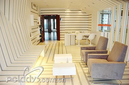 [page] 推门进去,立马能望见阳台储存的光穿刺过那扇玻璃墙来到客厅,让原来白色基调浓重的客厅圆润了不少,不再是那种干枯的白,多了“光”的味道,更有趣的是客厅的木制沙发居然是从墙上生成,由一道突起的弧线直接嵌连着椅背,非常艺术的造型。沙发底安置两三盏地灯,有些橘黄的光撞上四周的白色,让空间愈发立体起来,也让原本略显冰冷的客厅有了温暖的感觉。