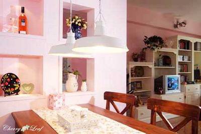 粉色的墙面和窗布提升了餐厅的温馨感觉 [page]