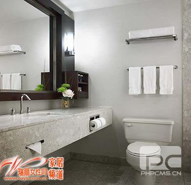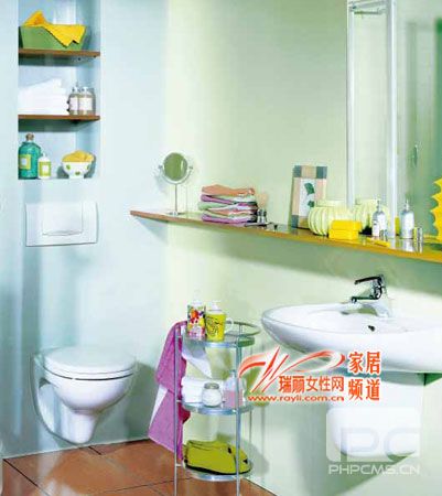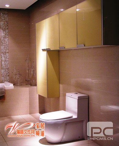 2、吊柜 洁具上方的魅色百合壁柜,充分利用了平常较易忽视的空间,大大加强了卫生间的储物功能。 [page]