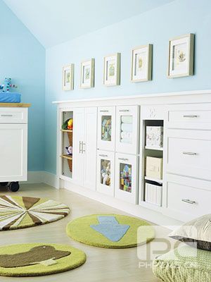 安装一个机动灵活的柜子做存储空间。在抽屉和开放的货架上,玩具是方便孩子拿取的。但衣服,鞋,和其他物品可以隐藏起来。选择若干协调小地毯,可以更经济,比购买大面积地毯有趣,可以创造出不同的区,让孩子发挥。 [page]