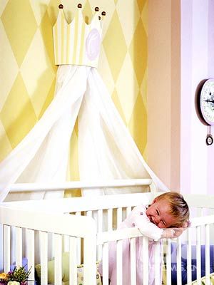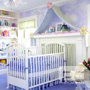 安全罩盖 织物的檐篷,虽然有吸引力,挂在婴儿床的周围,是不安全的。这个罩盖是挂在了一个废弃的壁炉上,成为婴儿床后的聚焦点。而且它,看起来面料柔软,也在婴儿的触及能力之外。