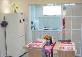 餐厅、厨房也已透明的玻璃门隔开,看来,主人是个喜欢宽敞明亮的清凉一组。