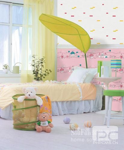 儿童房的装修往往有些天马行空,但考虑到孩子的特点和健康,壁纸既环保又安全。