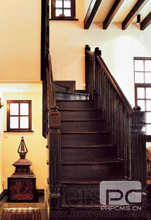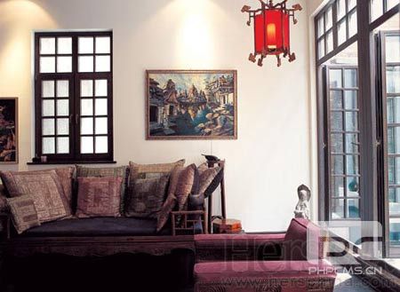 楼梯下的空隙被设计成摆放音响的隐秘空间,在宽大的椅塌上坐下,一曲音乐绕梁,不知从何而起,又在何处而终。 夫妇俩是讲究细节生活的人,自94年来到香港后,就开始到处收集家居装饰,这间屋子,正是在许多看不见的地方下了一大半功夫。设计师Raefer至今保存了这幢房子从修建之初到如今的所有阶段的细节图片,最大刀阔斧的算是那木扶梯,小到窗户与玻璃的嵌入空间,以及女主人为屋子找到的“首饰”:正红中国灯笼、旧式水晶吊灯、暗丝绒靠垫,细微处尽是当年的奢华的剪影,幽暗的基调里,饰品因那些大咧咧地越过大窗户的阳光而闪烁跳跃。 其实,老房子的细节结构仔细看,是一个空间魔术,木扶梯延伸了空间,也符合高层高的纵深感,而大面积的窗户则模糊了室内外空间界限,你能坐在客厅里看见细竹在慢慢发芽、落叶、生长。窗户曾经是困扰夫妇俩的大问题,因为以前玻璃的厚度与现在的有很大区别,而且因为木质因时光久远而变得脆弱开裂,坏了70%,所以,仅是为了保护好上海老窗户最经典的格子纹样,夫妇俩就磨掉了不少时间和精力,最后选择的嵌入式窗栏,满足了主人和设计师的修补心愿。 老上海人基本都是收纳高手,一枚枚戒指也会在一个小盒里拥有彼此分开的独自空间,不仅是老人们擅长的延伸和借景这样基础的空间构造规律,衍生正成为现代人越来越爱玩的空间戏法。那被Elisa称为“曾经的噩梦”的大木门,是夫妇俩从山西淘来的宝贝,一扇高2米的大门,无论如何都装不进他们以前的屋子,而如今,他们将大门装到了客厅大墙上,拉开大门的铁锁,电视和DVD渐渐浮现,不用时合上,就是墙面的装饰。Elisa说:“我猜这肯定不是平常百姓家的大门,一定曾经历过许多故事。”