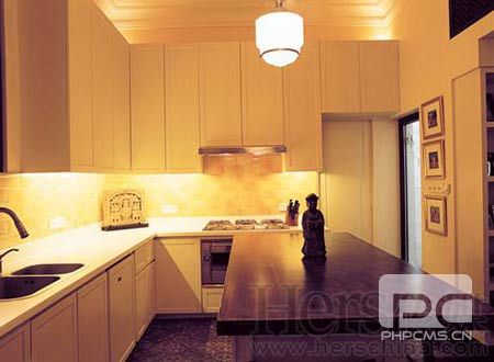 干净得不落一丝尘埃的厨房都采用厚实耐擦的材料,保持家的踏实感.。