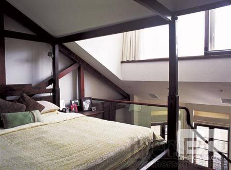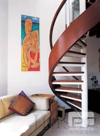 马赛克组成了不同的色彩,带着地中海浅浅的海水味道。 墙上1.4米高的柚木护壁板呼应了柳木地板和螺旋楼梯,墙面色彩装饰在老洋房里大有讲究。但当大空间这个必要条件必须失去时,许多人索性选择了白墙青瓦的江南水乡风情,和整装房屋的气韵相比,多少显得清汤寡水,好像给法式大餐上了道小葱拌豆腐,怎么都不对味。对色彩颇为挑剔的Amina遵循了以墙面色彩装饰奠定卧室主基调的规律,沙发上的四幅图画里,缅甸的僧人穿着鲜艳橘黄色的僧袍,舍弃老洋房常用的沉重木色,采用现代化亮色地板,奠定了空间的暖色调,感光度高,阳光穿过大窗,室内空间流动,与室外空间结合,力求接近自然又别有情趣。 “这个上海家的设计很好地反映了我的形象——正在努力成长的爱交际的女孩!有些传统,有些世故,有些贪玩,但是依然年轻有活力。” 室如其人,Amina如此评价自己。 老上海常说的老虎窗阁楼,总能透过它看见一些白鸽穿梭在楼宇之间。局限的空间只有这个角度能取到全景,却是笔者认为这个屋子里最经典的角落,而夫妇俩常年如一日地对生活的一丝不苟好像能让时间都停滞。