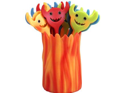 小恶魔调酒棒 这些精力旺盛的PARTY狂人们喜欢在每一个活动中都加入些活力。喜欢这些色彩鲜艳的调酒棒么?这些12一套的个塑料调酒棒还带有火焰形状的叉子头,帮助你享用美味的PARTY美食。 由法国Cra Cra设计。