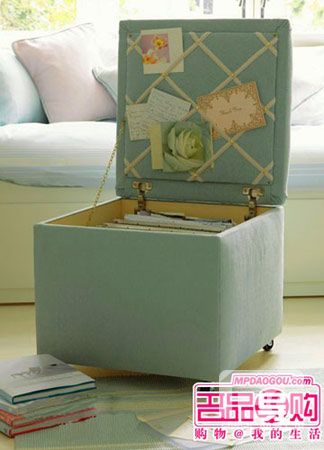 方块储物箱 可以用来做边桌和脚凳,打开后,其实是一个收纳箱,底部装有滚轮,移动起来十分方便。