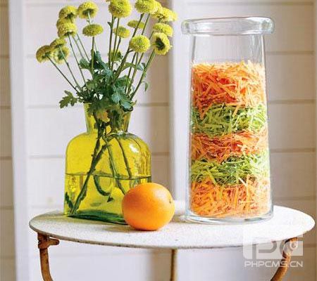 巧用碎纸 经碎纸机“蹂躏”过的不一定都是废物。10分钟,打成碎条的柑橘色系纸张装在高高的玻璃瓶里就变成当季最入时的家居装饰品。 [page]