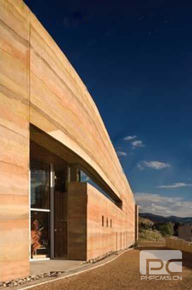 文化中心部分埋在地下,减少了极端温度带来的影响,它的朝向也使被动太阳能的吸收达到最优化,南面和西面的直射降到最低。 作为北美最大的冲压土墙体,这座建筑的外墙采用独特的材料,显示出诗歌一般的意境。这座隔热墙(R33)长80米、高5.5米、厚600毫米,稳定了温度的变动。土层结构用独特的现代建筑语言展现了地理沉降。 在项目中处处用到了蓝变松(Blue-stain pine)。绿色屋顶则减少了建筑对景观产生的视觉印记,本土植物的种植也重新建立起了沙漠景观栖息地。地板和天花板板材中的制冷和取暖系统创造了均衡舒适的环境,避免了风力、噪声和尘土的侵袭。 Nk'Mip沙漠文化中心是不列颠哥伦比亚地区新建的土著文化中心中第一座,也显示出建筑业探索丰富历史遗存和改造土著文化的趋势。 |