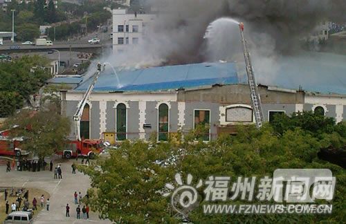 福飞路一双层建筑着火消防扑灭大火(图)