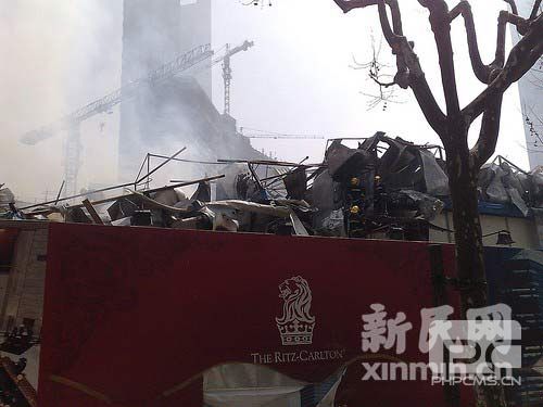 上海陆家嘴一在建大厦突发火灾 现场已有坍塌