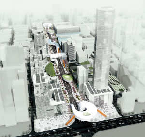 据悉,在近日举行的华强北路立体街道城市设计国际咨询评审研讨会上,以新加坡国立大学设计与环境学院院长王才强教授为评审主席的九位专家,对提交的14个方案进行了深入的讨论和投票评审,最终由北京非常建筑和深圳筑博+美国WORK联合体获得并列二等奖,深规院+深圳都市实践联合体获得三等奖。二等奖获得者将于一个月后提交修改方案,通过评审之后将确定最终设计方案。由于评审委员会成员一致认为,没有一个方案在可实施性和概念创意方面尤为突出,一等奖暂时空缺。