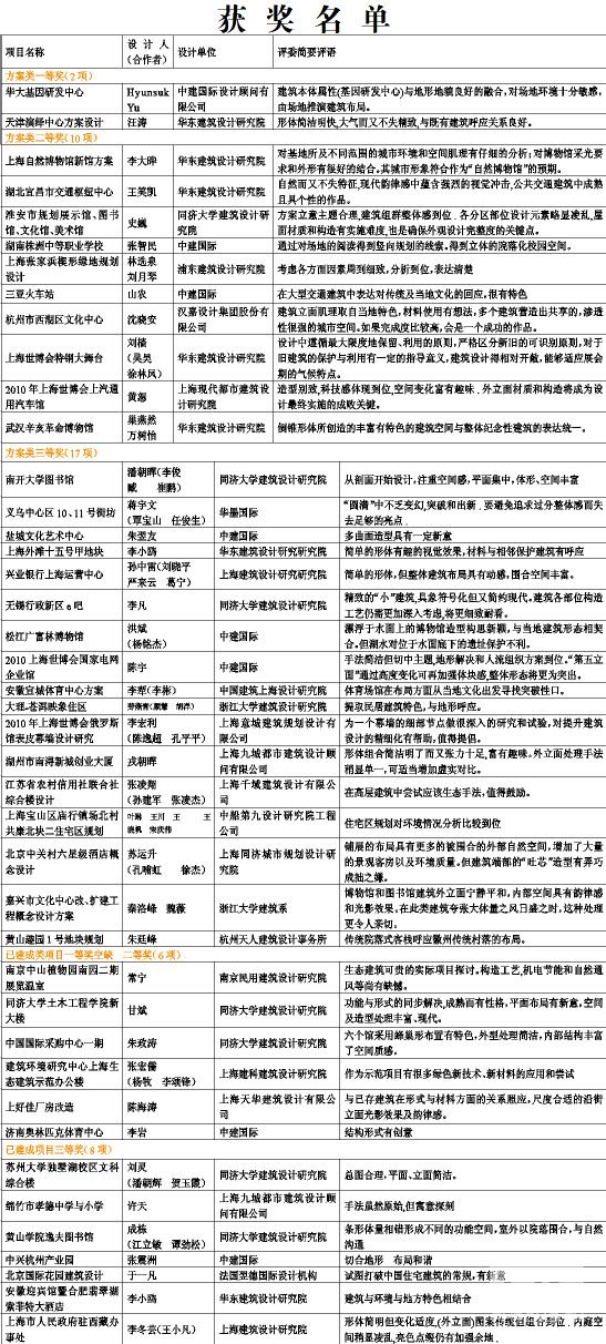 | 注重创意和表达的完整以及细部处理 来自境外事务所有着广泛国际视野的评委们经过两轮精心审评之后,第八届上海国际青年建筑师设计作品展奖项日前正式揭晓。 去年展览上授予的“20位最具大师潜质的青年建筑师”今年有10位继续参展,他们的作品不参与评奖。从另外123位建筑师提交的271个参展项目中,共评出方案类奖项29项和已建成类14项,有43位主创建筑师获奖。 评委们以自己的标准仔细研究和审视了每一项作品,在对提名作品进行简单的评价之后,还对参展作品的总体情况发表了自己的意见。总体来讲,本次参评作品建成的项目比较少,因此获奖作品也比较少,而且由于建成项目的表达方面信息不是特别全面,评委们本着严格一等奖的原则,因此建成类项目一等奖空缺。此次提交的方案类项目较多,总体水平也比较高。其原因是今年有多个大院积极组织骨干青年建筑师参展,如中建国际推荐了20位建筑师,华东建筑设计研究院推荐或自主报名的建筑师近20位,上海建筑设计研究院推出了13位参展者,同济大学建筑设计院参展的有12位,现代都市院推出了11位。更值得一提的是,很多中小规模的设计事务所以及工作室等也提交了非常有创意的作品参展,充分体现了年轻的建筑师团队的创作能力以及职业责任心。 与以往一样,作为评委之一的记者认为,这项展览的评选注重创意、新意和细部设计,对空间、材料与完成度的表现充分者,容易获得评委的青睐。这项评选不同于方案竞标,因为没有明确的目的性,也不同于优秀设计评选,因为并没有机会看现场的完成情况,总体而言是评委凭自己的经验对作品的一种认识和理解。评选拒绝商业、夸张、明显的模仿以及没有明确追求的项目。但也有部分建筑师在表达方面不得要领,不能给人完整的项目概念,很多已建成的项目照片很小,也不注重照片的质量,很难给人留下印象。有关评委因此提醒建筑师们,注意在展览或汇报时,作品的表达非常重要。 评委信息及其评价标准 IVANA BENDA:AAI国际建筑师事务所副总裁、设计总监。毕业于捷克工业大学建筑系博士学位。在中国有17年的专业经验,主持过中国境内的许多大型项目。 1.要符合可持续、环保、绿色等国际趋势。 2.中国的项目太多,如何从量到质的上升,以世界的眼光来看有什么样的闪光点、独创性。 吕羽:易道(上海)城市规划总监。哈佛大学建筑学硕士。在中国有超过10年的经验。主持过多个大项目。 评价标准:建筑与环境、社会、自然等的文脉关系;创新理念和设计手法的概念;简洁纯粹而又能完整地表达建筑的复合性和深度;功能符合要求;考虑建筑可持续原则。 夏坚靖:香港夏恳尼曦建筑设计事务所董事总经理。美国克罗拉多大学建筑学硕士。美国注册建筑师,AIA会员。上海经验超过10年。 评价标准:做设计有三个层次。1.你想做什么,主观上的东西。 2.应该做什么,客观提供给你的条件如何满足。 3.需要做什么,通过沟通了解业主的需求,满足需要然后把自己的想法与业主的需要结合在一起。 刘杰:上海刘杰建筑设计事务所合伙人。德国斯图加特大学建筑规划硕士。曾就职德国HPP设计事务所。 评价标准:简洁易解(空间尺度,功能布局,交通流线等)、个性鲜明(建筑造型,材料选择,色彩运用等)、多样统一(提倡变化,强调统一,在统一中求变化)。 陈伯冲:清华大学建筑学博士加拿大PHD设计合伙人 评价标准:1.看该设计如何对待场地。是否认真解读场地信息、脉络,正确理解场地环境,找到设计线索。重点观察总图或者区域平面图以及文字描述。 2.对该类型建筑的基本认识和独到理解。基本认识是对该建筑目的的有效解决方法(重点观察);独到理解是在有效解决的前提下,是否有更为独创的方法。 3.对材料、结构、构造等“专业”技艺的思考深度。 周宇峰:英国宝麦蓝(上海)建筑设计咨询公司首席设计师。 评价标准:设计成熟度、个性特色、社会认同,节能,生态等多种设计意识的体现。 部分作品评选详解 华大基因研发中心项目中,来自韩国的设计师并没有使用特殊的生态技术或者元素,但是楼层设计巧妙实现了遮阳,屋顶浅层绿化等都非常自然地利用了生态的规律。评委对此项目的意见较为统一:一是项目坐落于深圳东部的山地区域,建筑布局分解开来与周围的地形地貌有良好的融合,与环境有很好的呼应。二是与其他参选项目相比,有着较大的建筑差异性。但项目的其他信息缺乏,比如项目信息、业主要求,功能、流线等,所以对其他方面不能评价。 天津演绎中心以简洁和大气获得评委青睐,犹如小制作电影一般花费较少但呼声很高。作为演绎中心,在建筑形态上是用料最省、效果最突显的一个作品。设计师用了一种聪明的方式,在屋顶外用一些小曲线打破了建筑原本简单化的沉闷,外形处理精致而干净。但作者没有过多介绍内部形态和功能,项目信息不完工整,不能作出评价。另外比如屋顶包裹的曲线在具体变形时的转折细节等也没有推敲和具体的交待。 以上两个项目虽然是一等奖,但相关项目信息缺乏表达不充分,出于相信其他方面也会用心而获奖。评委们认为颇有遗憾之处。 对上海自然博物馆新馆方案,评委的意见不太统一。比较一致的看法是自然博物馆创意来自自然元素,比较贴切地面限高从而引入地下空间的设计考虑也很成熟。但另一方面,恰恰是这些