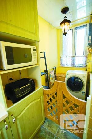 厨房是很长的一排,加上拐弯处的小空间,对于女主人来说,厨房很大。但王佳还是精心地将厨房布置了一下。在拐弯处的小空间,是厨房小阳台。因为卫生间太小,没地方放洗衣机,就将洗衣机挪到厨房小阳台,将这里改造成洗衣房。 为了和厨房分隔开来,特地装了一个原木色的小栅栏门,既不会挡住厨房的光线,也让这个空间和厨房分隔开来,成为独特的角落。 卫生间 砖砌洗手台