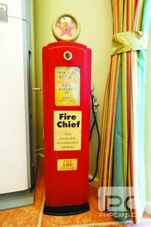 卫生间是家里最小的空间,大概有3平方米,在选择主材如马桶、手盆时,主人选择了小型号的。洗手台则是根据卫生间的空间直接用砖砌成的,装修工人先用轻体砖砌成台子,中间用两条钢筋固定后,将家里多出来的一大块地板砖固定在台面上,中间挖个洞放手盆。砖砌浴室柜下面本来应该安装一个门,但主人觉得装门不方便打开,干脆就装了一个布帘子,蓝白黄条纹的小帘子和卫生间的瓷砖颜色相配,让人不得不佩服主人的巧妙心思。 淋浴区也非常小,女主人的豪华浴缸梦破碎后,果断地让装修工人砌了一圈防水挡板,挡水板上镶嵌着五颜六色的雨花石,配上白色勾缝剂,小卫生间里立即充满生机。 ■ 巧妙心思 加油站CD架
