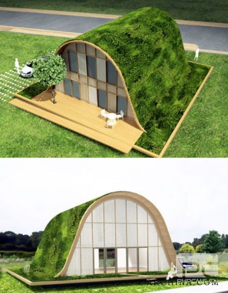 这种山屋设计出自帕特里克·纳多之手,堪称一个现代版的霍比特人住所。它的绿色屋顶采用波浪外形,一直延伸至两侧的地面,远远望去好似一把长椅。这种建筑名为“La Maison-Vague”,目前正在法国东北部城市兰斯建造。房屋的正面采用双层聚碳酸酯玻璃,屋顶和四周栽种绿草、茎叶肥厚的植物以及气味怡人的芳草,例如百里香和薰衣草。