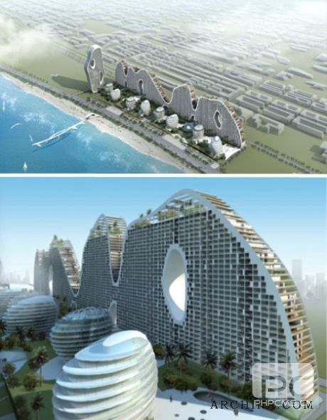 “假山”建筑群出自MAD建筑事务所之手,目前正在中国沿海城市北海建造。它建在一条狭长海滨区域,由高层/长形的塔楼和低层板楼组成,建筑设计团队采用了大胆而美观的假山造型。MAD表示:“这种外形能够让居民的视野实现最大化,但由于前面是海滨,后面是土地,孤立地夹在中间显得有些突兀。解决之道由两部分组成:打造一个假山造型,既让人联想到山的外形同时又不凌驾于这一地区的地形之上;在建筑结构上面开洞,增大空间感,同时让海滨景色和光线穿过。”
