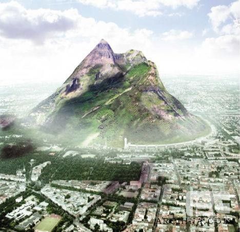 如何以一种方式将数百万城市居民与周围环境融合在一起呢?建筑公司MVRDV为中国提出了一种有关未来城市的建议,即建造高耸入云的摩天塔,外形好似被放大的小山。每一座“小山”的梯田式外部环形结构最多可容纳10万人,内部则是休闲场所同时为包括零售业在内的各种产业提供空间。落成之后,以往我们常见的高楼大山无限蔓延的城市将不复存在,取而代之的是一座座小山,或者说为中国的山川家族人工增加了一批新成员。