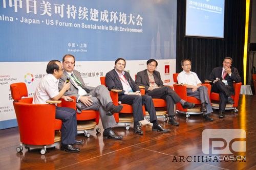 论坛由康奈尔大学的华颖女士,华夏新能源组织代表,诺杉新能源CEO姚晓潮先生,上海市建筑学学会副理事长曹嘉明进行开场致词,东京大学EMP企划主任,麦肯锡日本前任总经理横山祯德先生,瑞典皇家工程科学院院士吴志强教授,麻省理工学院建筑系教授,中国著名建筑师张永和先生进行主旨演讲介绍各自的研究领域并根据各自观点,进行中,日,美的对话。对话从社会体系讲起,又涉及到了一些更具体的措施,包括比如说设计师对可持续建成环境做出哪些贡献,以及怎么样能够打造。横山祯德先生认为:随着城市化的日益加剧,全球的能源与资源的危机,老龄化人口日益增加,可持续环境理念的深入人心都是有必要让我们进行可持续环境的原因。对社会系统设计进行了详细的阐述,他认为一个新型的实惠体系应该是劳动密集型,环境友好型的社会,从而希望更多的人士能够加入到社会系统设计领域。张永和先生则谈了一些浅绿建筑的概念,包括回收再生塑料材料,通过转换材料进行节能减排等等。