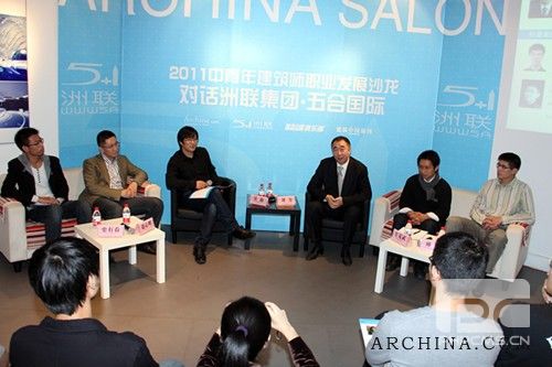 沙龙对话环节的特别嘉宾为刘力博士,讨论由吴磊先生担任主持,上海现代建筑设计团委书记廖方、李祖原建筑师事务所建筑师左克武、上海贝一建筑设计主任建筑师赵心明、以及上海大学建筑协会主席史有春则作为观察员,代表民营、外资、国有以及在读的建筑师从包括建筑师如何选择企业、专业化和职业化的区别等多个角度向刘力博士提出目前建筑师最为关心的问题。