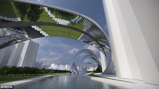 保加利亚索尼克模块公司提出了这个设计。这个60层的设计方案已入围国际设计大赛“2012反思上海”。今年年底,主办方将宣布参赛结果。 公布这些照片的Gizmag网站说:“设计师从中国龙那里受到启发,创作了名为Sity的设计方案,这是缩小新旧中国差距的一次尝试。在中国,龙是一种具有传奇色彩的生物,象征着权利和力量,这些元素无疑适合于这样一种规模的建筑。”根据设想,这个建筑建于一个公园和一条河流上面,它有许多部位和地面接触,人们可以通过这些点进入其中。另外,根据需要,可建造公路甚至地铁线等基础设施。 这个概念设计的合作者之一阿纳斯塔斯-卡尼夫对Gizmag网站说:“从宏观尺度来看,它的效果无疑是非常棒的。我真的希望上海人会喜欢它,会试着了解Sity设计。因为它所带来的将是一个崭新的都市生活。这个建筑主要有3个特点,一是动态的,二是生态环保的,三是可提供持续发展的城市生活。” |