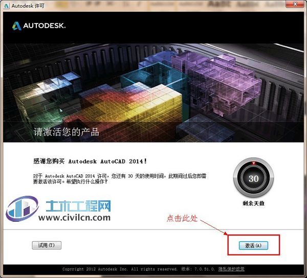1.打开CAD2014,点击激活,勾选同意协议之后它会告诉您,您的序列号是错误的,这时点击关闭等一会再点击激活即可。(如图)