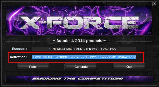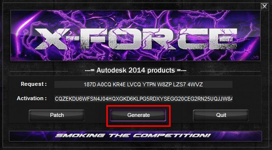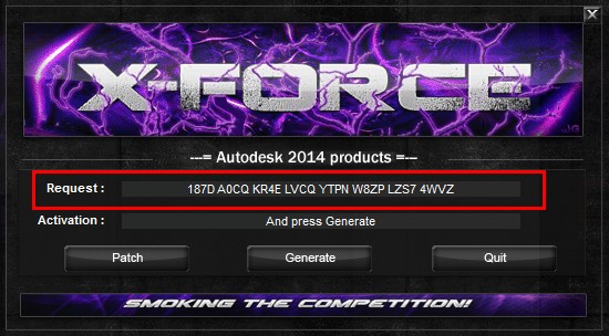 3.启动对应版本的XFORCE Keygen 32bits 或 64bits注册机(下载地址:AutoCAD2014注册机免费下载)