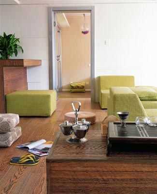 立方体的地台上透露实木的淡然,一件中式的茶吧台恰好在主人阅读之余用来休养生息。平淡敞阔、悠闲自得,一派泰然喜悦的温情。 2、大空间里图行天下的食色