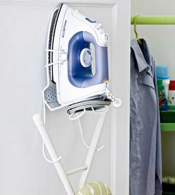 不想再伤脑筋地到处找角落放置整理衣物的工具?那就把它们也收纳起来吧。在门上钉个壁挂式支架,熨斗和熨衣板就有个幸福的小家了。