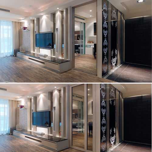 设计师以卡典西德图腾贴在镜面上,黑镜互相反射出低调光谱,将收纳柜体藏入神秘图腾中,时尚氛围油然而生。