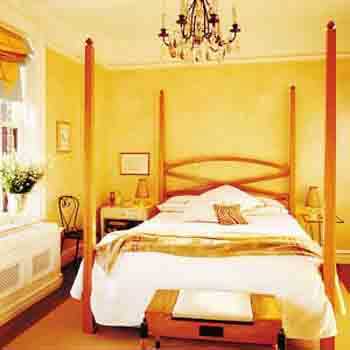 家具的色彩在整个房间色调中所占的地位很重要,对卧室内的装饰效果起着决定性作用,因此不能忽视。家具色彩一般既要符合个人爱好、更要注意与房间的大小、室内光线的明暗相结合,并且要与墙、地面的色彩相协调,但又不能太相近,不然没有相互衬托,也不能产生良好的效果。对于较小的、光线差的房间,不宜选择太冷的色调;大房间、朝阳的,可以有比较多的选择。另外,应考虑到不同面积不同功能的房间色彩可有不同,因而所产生的效果不同。如浅色家具(包括浅灰、浅米黄、浅褐色等)可使房间产生宁静、典雅、清幽的气氛,且能扩大空间感,使房间明亮爽洁;而中等深色家具(包括中黄色、橙色等)色彩较鲜艳,可使房间显得活泼明快。此外,卧室光线不宜太强,因为床是静息之所,强光会使人心境不宁,所以室内最好用柔和的白炽灯来照明,而尽量少用日光灯。