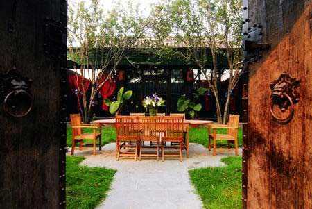 玻璃长廊在第三进院里搭出了一间玻璃浴室,算是到了头。这第三进院是客房,大约50多平方米,面积较前两个院要小很多。不同于二进院的西洋格调,这里完全是旧式文人与世无争的气度,墙头一抹纤竹斜立,门口两把懒洋洋的藤椅,角落里堆些粗土瓦罐。闲来无事,在这里观花弄猫,怡情养性最合适不过。