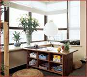 主人将原有狭小的厨房空间加大,并改造为开放式的,明亮开畅 装修法宝 a 处处遵循着增大视觉空间的法则,从简约的板式家具,到整个房间浅谈色的调子,通透的空间增强了各功能区的联系,并形成较大的空间心理感觉。 b 根据空间的限制灵活调整功能区的布局。通常应安排在房间最隐蔽处的卧室恰在卫浴间对面,而起居室和会客区占据了房间的主要部分,对独居小户型而言,空间区域完整,功能分割也很合理。 c 一种空间多个用途。开放厨房留出短小的餐台,立刻就是餐厅。而蒲团矮桌围成的临窗会客厅区,又可以作为主人的书房,一个安静而直面都市的思考空间。 |