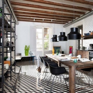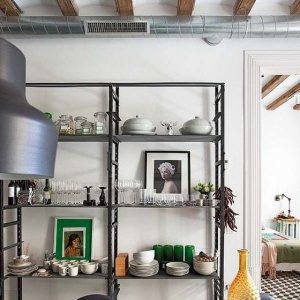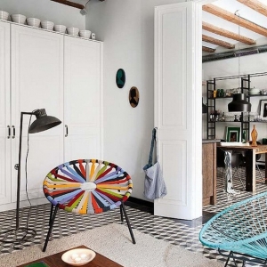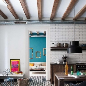 摘要: 该公寓的装修风格是复古和工业注入共同创造一个完美的交融,其耀眼的地方在于那滚动块图案的瓷砖覆盖这个空间,让整个空间变得灵动。木制吊顶、客厅极具特色的彩色休闲椅、背景墙上的画框都为这个空间增添了复古的味道。 关键词: 公寓设计 复古公寓 巴塞罗那公寓