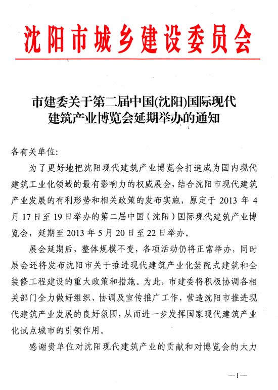 摘要: 现代建筑产业博览会5月20日在沈举行,为了更好地把中国(沈阳)国际现代建筑产业博览会打造成为国内现代建筑工业化领域最有影响力的权威展会,第二届现代建博会将延期至2013年5月20日至22日举行,期间沈阳市将结合现 ...