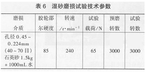 5.堆焊层耐磨性 铸铁焊条 为考察研制药芯焊丝堆焊层在不同应力等级下的耐磨粒磨损性能,分别采用MLS-23型湿砂橡胶轮式磨料磨损试验机和SKODA磨损试验机进行了磨损试验。 (1)湿砂橡胶轮式磨料磨损试验湿砂磨损试样尺寸:57mm×25mm×12mm,湿砂磨损试验技术参数如表6所示。 试验前、后,将试样放入盛有丙酮的烧杯中,在超声波清洗仪中清洗5~8min,通过用万分之一克光学天平测量耐磨堆焊试样的失重量,以此来衡量堆焊层的耐磨性。取淬火后硬度为52HRc的45钢作为对比试样。