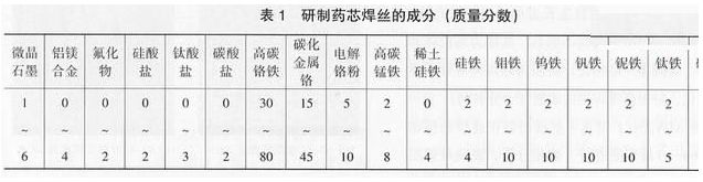 一、摘要 中速磨煤机抗磨损件(主要是高铬铸铁磨辊和磨盘)在磨制煤粉过程中不断磨损,其失效形式主要是煤对抗磨损件的摩擦损耗产生的三体磨料磨损,其磨损方式主要是煤中的硬质颗粒对抗磨损件表面造成的显微切削、犁沟塑变以及碳化物的破碎与剥落;磨损机理为微切削磨损、塑性疲劳磨损、脆断和剥落磨损三种机制并存,但以微切削磨损为主。 针对中速磨煤机高铬铸铁抗磨损件的磨损失效机理,研制了两种焊接工艺性能优良,堆焊层具有高硬度和高耐磨性的多元合金强化型自保护药芯焊丝,并对研制焊丝自保护机制的实现和堆焊层高耐磨性的原因进行了探讨。 二、设计原则 研制药芯焊丝(脚号58-O、60-O)外皮采用韩国进口低碳冷轧钢带H08AL,截面为O形,药芯填充系数调整范围45%~55%,先轧后拔工艺生产,成丝直径为3.2mm. 研制药芯焊丝为金属粉型;合金系采用多元合金(Mo、W、V、Nb、Ni、Cu、Zr、Ti、B、Re等)强化的Fe-Cr-C系耐磨合金;主要采用造气-合金元素自保护机制。研制药芯焊丝的成分如表1所示。