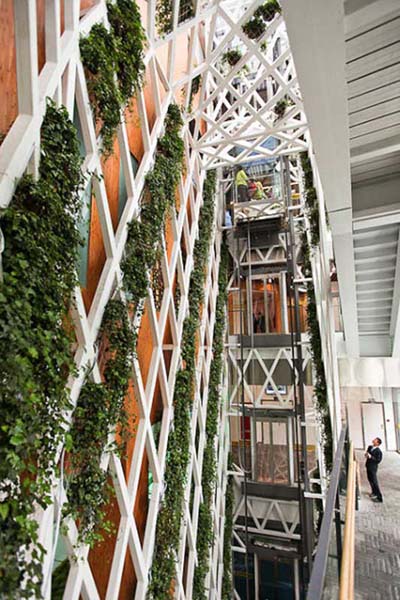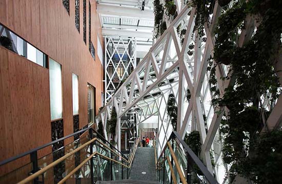 这是一个“垃圾”造出的楼房。建造它的砖是设计者从上海市中心街巷的工地一块块“淘”来的——来自上海旧城改造时拖走的石库门。内部的大量用砖与装饰板材也是来自工业的废料。屋面也采用了以竹子为主的天然原料。(因为竹子的生长周期短,利用它可以更好的保护我们的木材资源。)它的建造过程也以“工厂预制、整体吊装”的方式,以把建造污染降到最低。从建造过程的本身就展示给了人们应重视保护历史文化、保护环境。![]() ![]() 这个未来的家有着神奇的绿色中庭。这是一个专为上海的地理、气候条件量身打造的建筑,它比目前同类建筑可以节能60%以上。“嵌”在整座建筑之中的“生态核”是这座建筑最独特指处,在造就丰富室内空间的同时,也让房子本身变得更加的聪明与生态:绿色植物是这里天然的过滤净化器,这使得四季室内空气保持畅通清新,丰富的空间造型也为气流的组织创造了条件。顶部的开合屋面,在加强自然通风效果的同时,也增大室内采光效果。 屋顶的“追光百叶”可以跟随太阳角度的变化而自动转变角度,在遮阳作用,也可以智能的反射环境光,提高室内照度;这里的灯同样也是智能的,在感知周边环境照度降低时,他会自动开启,而其动力则来源于太阳能薄膜光伏发电板与静音垂直风力发电机等所产生的清洁能源;会呼吸墙体,可以有效的控制气流在其中的流动,可以降低墙面的辐射温度,调节室内温度。 ![]() 生态家中的两个电梯也各具特色: 一个可以回收电梯势能,在上上下下之间,所产生的能量备有效的储存了起来;另一个则是变速电梯,它可以根据电梯乘客的多少来控制电梯速度。 随处可见的模块化的绿色植被,为这座绿色之家增添了生命与活力,而它们也不不需要特殊照顾,智能化装置控制的“滴灌”技术会根据植物所需自动进行运作。 |