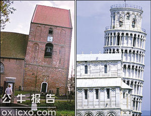 世界上最著名的比萨斜塔作为世上最斜的建筑纪录已被打破,它就是德国一座乡村教堂斜塔。 这座位于德国北部Suurhusen的教堂尖塔已被正式列入吉尼斯纪录世界大全,成为全球倾斜度最大的建筑。它的倾斜角度为5.07度,而比萨斜塔仅有3.97度。 ![]() ![]() 这座教堂建于13世纪中期,但高90英尺(约27.43米)的尖塔是在1450年加建的。尖塔由橡木建筑而成,而橡木结构与潮湿的地基使这座尖塔渐渐偏向一边。 自从1982年以来,阻止尖塔继续倾斜的努力一直在进行,直到1996年尖塔终于得以固定,不再倾斜。目前这座教堂仍在使用,并成为旅游景点,教堂方面一直在申请捐款对其进行维护 |