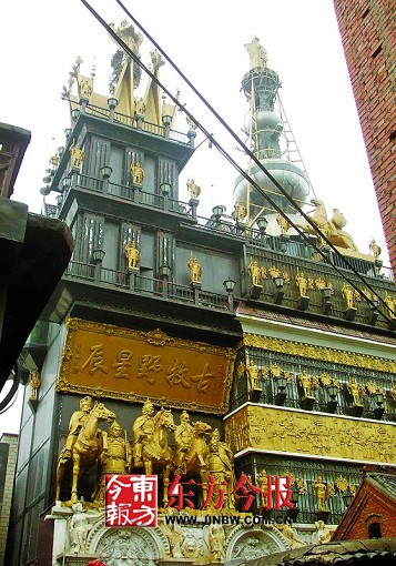 因为独特的外观设计,一栋原本普通的民宅被网友拍下照片,并冠以“新乡最牛豪宅”在网上引起热议。一时间,跟帖者甚多,有人说这房子 “像教堂”,有人则认为“更像寺庙”,但更多的人关注的是“豪宅”主人的身份。![]() “最牛豪宅”引发网民热议 近段时间,在新乡市“加油新乡”论坛上,网民“射手”的一篇“新乡最牛豪宅”的帖子引起热议,“射手”从各个角度拍下了新乡市某居民区内的一栋房子,该建筑顶部东西分别“站立”着四米多高的姜子牙塑像和三米多高的“外国天使”,哥特式建筑风格,整个建筑外表“布满”了大小不一的中国商朝名人以及外国武士铜像。 帖子发布不到1个小时,网友“蓝点”便指出该建筑位于新乡市牧野区西牧村。 众多网友都发表了自己的看法。网友“F3”说,“东西合璧,比较古怪”,网友“蓝点”觉得建筑看起来“像教堂”,而网友“爱之汀”则一直认为“更像寺庙”。网友在评论建筑风格的同时,都不约而同地将注意力放在了对“豪宅”主人身份的猜测上。 50余铜像,汉白玉外墙 7月1日上午,根据网友提供的地址,记者前往新乡市牧野区西牧村。还没进村,记者便远远地看到了这栋屋顶上金黄色的“姜子牙”像,塑像高约4米;其西侧屋顶还有一个略低的“挥着翅膀的天使”。 附近村民王大爷告诉记者,这栋房子已经盖了有一阵时间,房主姓袁,是西牧村的“女婿”,农民出身,几年前盖了这个房子,“有专家预估这房子得四五百万元”。和“豪宅”一墙之隔的村民李军(化名)告诉记者,他经常能看到很多市民、学生慕名而来参观、拍照。 在李军家的院子里,记者仰面看到这栋6层建筑,除去楼顶“姜子牙”和“天使”两尊大型塑像,在每一层楼外的护栏上也都分布了5到11个数目不等的塑像:有身高不足1米、手拿矛盾的外国武士,也有3米多高,骑着大马的商朝名人。记者粗略数数,总共有50多个。 在六尊商朝名人的上方,悬挂着一块两米多高,四五米宽的黄色牌匾,上书:古牧野星辰,落款:袁鸿安书。 李军告诉记者,这些塑像以及牌匾全部都是用黄铜做的,下面白色的外墙则是汉白玉,整个建筑因此看起来金碧辉煌。 将建成牧野文化展馆 7月1日下午,经过辗转联系,记者终于见到了房主,即房屋设计者袁鸿安。出身辉县农家的袁鸿安干过木工,也做过工程,现在是新乡市网通公司的一位中层管理人员。 “我把这辈子的积蓄都用到这栋房子上了。钱是光明正大的,不然也不敢如此‘招摇’。”袁鸿安说,自2000年开始施工,迄今他已经耗资200多万元,最近由于资金跟不上,内部的装修暂时停止。 至于房子的设计理念,袁鸿安说,他个人偏爱哥特式建筑,而新乡又是牧野大战的古战场,所以在房子风格把握上,他希望能把牧野文化和西方建筑融合在一起,来一次创新。 据袁鸿安介绍,房子总面积不到500平方米,并非只是单纯的个人居住场所,下一步竣工后,他会把这里作为一处旅游景点,作为宣传牧野文化的展馆对外开放,“地下一层是纣王殿,二层家人居住,三层牧野大战展览馆,四层多媒体演示厅,五层是文王殿……” |