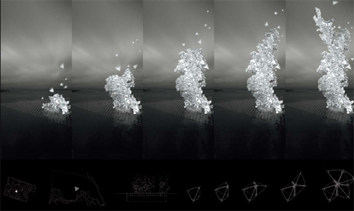 ![]() 生态摩天楼的智能之谜 ![]() 来自美国的Eric Vergne的作品获得了本次大赛第三名,建筑设计位于美国曼哈顿的Hudson Yard。仿生建筑的内部空间似乎是由生物细胞组织而成的。空间不再是均质划一的,人们有了丰富的空间体验 ![]() 外观上无序而让人迷惑的建筑表皮就像一阵龙卷风袭过曼哈顿岛 在建筑大师柯布西耶、高迪笔下,活在空中曾经只是美妙空想在设计图上那轻轻的一抹。如今心生异想的设计天才们却打算将它变为现实,2009摩天大楼设计大赛仿佛在暗示我们,不要小瞧想象的力量,或许,未来的城市楼宇真是如此模样。 著名建筑师法兹勒•康说过:“今天建造190层的建筑已经没有任何实际困难。要不要盖摩天楼,并不是工程问题,而是个社会问题。” 拥挤、耗能、隔阂邻里、暗藏消防隐患,甚至影响儿童智力发育,种种原罪让这些庞然大物在展示人类惊人技术成就的同时,也招致了无数诋毁之辞。 然而,依旧有很多建筑师重构一个又一个未来高楼的梦想,延续了4年的09eVolo摩天大楼设计大赛为他们提供了最好的舞台。最近在美国又评出了第5届的获胜者。在这项纯实验性赛事里,未来摩天楼的发展趋势是唯一的主题,比赛对场地、建筑高度、外形和技术指标没有任何规定,这让参赛的建筑师有了无限的想象空间,也让我们惊诧于人类智慧的无穷尽。 城市肌理向空中延伸 在来自64个国家的416幅作品编织的图景中,未来的城市中原本平面化的网格,变得垂直立体,摩天楼仿佛是城市的网格肌理在天空中的延伸,而建筑本身内在空间的情形和空间变化同样也为外在的城市肌理提供探索空间。尤其是一些巧借仿生学概念的摩天楼,其内在的细胞空间、脉络交通,可能会对周围的建筑网格的拼织形态,以及周围的道路交通系统的组织有一些触动。或许,这将能为人们创造一种旅行般的体验——而不只是简单的点对点目的地式的体验。 像法国的设计师Sylvie Milosevic的作品,赋予了建筑造型诸多曲线元素,使建筑产生了动感。表皮的局部编织效果,则给人以奇特的心理感受。放在城市空间中,建筑仿佛是城市网格的一种变异,原先的网格似乎被某种力量从地面拉起,扭动,交织成一体,中间生长出触须并在高空最终演化成触角,以一种奇特的张力在和天空进行着对话。 当城市网络被垂直到难以企及的高度,热岛现象是否会加剧?如今的摩天楼由于空调、照明等设备均需较大的能量供应,产生的大量热能会改变城市原有的热平衡。本次大赛第三名的获得者美国设计师Eric Vergne带来的“未来城市农场乌托邦”的建筑表皮被设计出很多空洞,这既是建筑的辅助结构,也具有装饰的作用,很好地解决了高层建筑的气流通风的问题,大大减少了空调的使用率,也为利用风能提供了条件。 与风共舞的建筑表皮 摩天楼大都是采用最新的技术和材料构建出来。这是为了减少如此巨大的建筑综合体所带来的资源消耗。因此,在其中往往可以看到很多对节能环保方式有意义的探讨。英国建筑师诺曼福•斯特设计的法兰克福商业银行,以及马来西亚的杨经文设计的很多生态高层建筑给人耳目一新之感。 太阳能、基因能源、空气循环系统、楼板水冷系统、再生能源、材料再利用等新鲜技术的应用,将会在未来的摩天楼中随处可见。有些摩天楼可能还会有智能化的中央控制系统,对建筑本身的能耗做动态的管理。 同样来自法国的设计师Julien Rousseau和他的团队带来了“能与风舞”的建筑,建筑的表皮设有感应和收集能源的装置,成长条形均匀的排布在建筑表面。随着空气的流动,表皮的这些条形物能够像动物外皮上的毛发一样随气流弯曲、飘动,在摆动的同时,其末端的感应器就会将风能转化为建筑使用的能源。这看上去就像是风和建筑表皮的一场互动游戏。另外,这层体表毛发也可以有效保护建筑物本身不被阳光直接照射,能够避免产生高层玻璃盒子的温室效应,室内的光影效果多变、温度适宜,减少了空调系统的能源消耗。这种新型的建筑表皮结构,为人们探索未来摩天楼的节能方式提供了新的思路。 垂直空间演绎田园牧歌 未来的摩天楼建筑可以在土地资源日益短缺的情况下,为人们提供更多的使用空间,为在高空生活的人们带来更好的阳光、空气、绿地,营造出友好的、生态化的聚居方式。另外,由于未来的摩天楼大都是城市综合体,汇集各种功能空间于一身,居民的城市生活将会变得更加便捷而富有乐趣。很可能在不远的将来,我们将在一座建筑中完成一天的所有使命:居住、工作、娱乐、运动,免去了交通堵塞带来的困扰,一天24小时将会被更多地利用起来。 诺曼•福斯特说过,“未来城市”将是一个配套完善的社区,商店、学校、戏院、公园和小型医院等公共设施一应俱全。还有绿草如茵的“空中花园”,是居民休憩的好地方。而设计师Eric Vergne就试图利用仿生学的知识,构筑出一个复杂的空中社会。从外面看上去,这些建筑可能是一个无序甚至混乱的表皮。但是它的内部却如生命体细胞一般井然有序,建筑本身似乎是自然生长出来的。它的功能设想是将原先与城市分离的乡村农场生活方式,整合到未来的城市生活中。这是个疯狂的,却又富有诱惑力的想法。 在这个巨大的综合体中,尺度最大的是大型农场,其次是小农场、各类市场以及自身循环系统等空间、再小一些则是为人们提供的