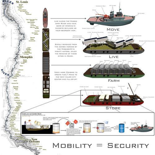 由建筑设计公司Architects Southwest 发起的第一届僵尸避难所设计大赛开始了,牛逼的设计师们请开动你们的脑筋,设计出牛逼的堡垒把僵尸都关在外面。 设计的主要问题: 1.避难所能住多少人。 2.资源怎么消耗,浪费吗? 3.怎样进入安全的避难所。 4.能够住多少天? 5.如果僵尸入侵该怎么逃离? 6.怎样将僵尸隔绝在外? 目前已经有了4个作品,以下是作品欣赏: 作品一:40 Day Z POD 一个长方形的建筑。建筑每一面都有各种能源存储。当僵尸靠近时还能发出电锯干掉之。 作品二:SS Huckleberry 主要理念是一个移动的大轮船,作者认为移动以及在水中理论上就是安全的。轮船里有军事设施,食物农场,以及能源仓库。他们的想法是使用僵尸尸体制造轮船的能源。 作品三:Mountain Getaway 一个塔形建筑,僵尸们攀爬能力应该都不怎么强。 作品四:Sears Roebuck 003-b ![]() 额,这个有点看不懂。可能是空中迷宫吧。 ·发表评论 |