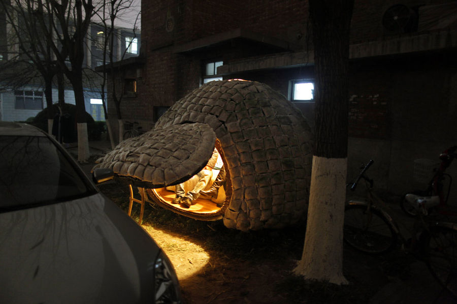 昨晚7点半左右,街头,不少人已穿上羽绒服,戴海飞的“蛋形”小屋里,温度表显示4.4℃。 戴海飞,24岁,刚毕业半年。利用公司的设计创意,他用竹子造出一座“蛋形”小屋作为自己的蜗居。 ![]() 材料 竹条钉子造出蛋形小屋 戴海飞的公司位于海淀区成府路的一个大院里,在公司楼下,一座小屋像一颗巨大的鸡蛋,立在草坪上。小屋两米来高,麻袋拼成的外皮,看上去有些不起眼。“蛋壳”上,被掏出一个椭圆形的小门,没有锁。小屋的下边,装有轮子,可以挪动。 昨晚,戴海飞轻轻一掀,就钻进了屋。从里边,可以看出小屋由竹条编制而成,上面用一些钉子进行固定。戴海飞介绍,在竹条外,还有竹席、保温膜和防雨膜,最外边,是麻袋拼成的保温层,麻袋里填充着发酵木屑和草籽,“到了春天,里面可以长出草来。” 蛋形小屋里摆设简单,一张约一米宽的床,床头放着几本书。床尾藏有一个水箱,里面有压力系统,可以把水压上来,供洗漱用。“一水箱水大概能用三天,用完了就到公司去接。”戴海飞说。 由于“蛋壳”只有约一拃厚,小屋里并没比室外暖和多少。记者坐了十几分钟,手脚就被冻得冰凉。 创意 项目“城市下的蛋”中获灵感 戴海飞的老家在湖南邵阳的乡下,父亲在建筑工地干活,母亲在一家公司做清洁工。戴海飞在湖南读大学,从网上找到北京一家建筑设计公司实习,毕业后就留了下来。他说,父母年纪大了,却仍然在奔波,希望给他存钱娶媳妇,“他们不知道以他们的工资水平,在北京买套房需要工作两三百年。” “即使在北京租房,价格也让我难以接受。”戴海飞介绍,年初,在公司的“双年展”上,展示了一个设计项目,叫做“城市下的蛋”,即可以移动的蛋形小屋。“我希望有自己造的房子,这个设计正好符合我的要求。”戴海飞说,他决定利用公司的设计概念,给自己造一座房子。 随后,戴海飞跟表哥借了6400多块钱,作为买材料的成本,在几名学弟学妹的帮忙下,忙碌了一两个月,造出了这座蛋形小屋。国庆节结束后,戴海飞花了三千多元,把小屋从老家运到了公司楼下。白天,他在公司里工作、学习,晚上12点,从楼上的公司下来,钻进小屋睡一觉,早上8点起床,上楼就是公司。只是进入冬季后,小屋越发冷了,晚上大概只有3、4℃。“我有蓄电池,每个月到公司充一次电,晚上冷了就用电热毯。” “不租房,我也是‘月光族’,但我的生活质量明显提高了。”戴海飞说,他已经在小屋里住了快两个月,因为没有房租的负担,现在,他偶尔还能去咖啡厅享受“小资生活”。 ■ 对话 戴海飞:享受“蛋壳”里的生活 在聊天中,戴海飞透露,自己的小屋曾经遭到物业驱赶,但因为没地方搬,最终不了了之。虽然也想过要有房结婚,但现在,他很享受蜗居“蛋壳”里的生活。 曾经遭物业驱赶 新京报:住进小屋之后,生活得怎么样? 戴海飞:没有房租,我每天吃饭不用再考虑怎么省钱,还在清华附近办了张游泳卡。每天下班后,就去游泳,顺便洗澡、桑拿。周末时,出去逛逛北京城,有时间还能和朋友聚会。 新京报:小屋放置在这,会不会被别人赶走? 戴海飞:(笑)我被赶过啊。小屋放的草坪是人家大院的,也不是我们公司的。前段时间,物业来人让我把家搬走,但我没地方搬,他们也拿我没办法。现在也不管我了。 新京报:有没有想过,有一天你下楼,突然发现小屋被搬走了,身家财产都没了? 戴海飞:小屋就是睡觉的地方,床下是些衣服,没什么贵重东西。(指指自己的全身)我就只有这些,最贵重的就是笔记本电脑,在公司放着。(笑) 新京报:你的小屋充电在公司,用水在公司,其实完成这个概念,你的公司支持很多的?算是近水楼台了? 戴海飞:不全是公司充电,太阳能板也能给蓄电池充一部分电。公司对于水电部分确实对我挺宽容的,算是一种福利吧。(笑) 自称不觉得艰苦 新京报:北京的冬天这么冷,住在这间小屋里,也可能被冻醒,你来之前想过会这么艰苦吗? 戴海飞:我没有想那么多,其实我并没有觉得很“艰苦”。湖南的冬天比北京难熬,是那种湿冷。所以我在这里还好,也就是睡觉,我的被子很厚,昨晚还被热醒了。父母也知道我的生活,我打电话告诉过他们我住在哪里。他们觉得能省下房租,也挺高兴的。 新京报:但是他们也希望你娶妻生子,有套房子吧? 戴海飞:是啊,他们也说我应该有房子,找个女朋友,结婚。但是他们不知道在北京太难了。我原来租房子,是那种一个大屋被木板隔成很多小间,十几平米的房间每个月的租金就八九百。今年毕业前,我回家做毕业设计需要退房,还被中介以各种理由克扣了押金。真的很无奈。所以我现在很自由,不想那么多了。 小屋材料成本 轮子160元 扎带125元 磨片31元 水箱、气筒95元 钢筋573元 钻孔18元 竹子375元 工具210元 胶水200元 水龙头42元 钢管95元 木板530元 防水布508元 太阳能970元 角钢30元 螺丝115元 油漆284元 焊工260元 喷枪450元 纱布600元 保温层100元 草籽110元 节能灯36元 气撑50元 有机玻璃160元 洗脸盆60元 钢丝网240元 总计6427元 ·相关帖子1 ·相关帖子2 |
