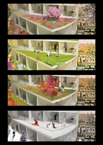 西班牙建筑师提出楼梯式摩天大楼设计 城市生活常常意味着我们要住在公寓楼,而这势必会带来个人室内空间不足的问题。由西班牙巴塞罗那纳比托建筑师事务所(Nabito Architects)提出的“楼梯式摩天大楼”(Stairscraper)建筑设计新概念通过让城市居民体验到乡村生活的乐趣,轻松解决了这个问题。每个单元都有一个小院,位于下面单元的顶部。 这种建筑的独特外形使得每栋公寓的屋顶充当了上层公寓小片绿地空间的“地基”。只要屋顶足够的结实且具有极佳的隔音效果,增加此类绿色屋顶只会对大楼内的每一个住户有益无害。楼梯式摩天大楼不是给高密度城市生活所设计,虽然住户相对少,但它却占用了大量空间,肯定会带来独一无二的城市生活体验。 与大多数公寓楼不同,楼梯式摩天大楼的每个单元都拥有自己的私人室内空间,住户可以与大自然亲密接触,不出家门就能种花种草,拥有属于自己的菜园或花园。在诸如此类的设计中,安全性无疑是一个难以克服的障碍。不过,安全玻璃墙和扶手或许足以消除人们的担忧,同时,从外面看,会给人一种置身“实实在在”的农家小院或私人花园的感觉。 虽然这种设计存在与生俱来的缺陷,但融入室外空间的城市建筑的确是一个新奇的概念。提出楼梯式摩天大楼设计的建筑师表示,这种建筑的某些楼层会被指定为公共空间,楼内所有住户都可使用,从而不会丧失公寓楼的社交功能。据报道,阿联酋的阿布扎比将来计划建一栋楼梯式摩天大楼,不过具体日期尚未公布。 新概念通过让城市居民体验到乡村生活的乐趣 与大多数公寓楼不同,楼梯式摩天大楼的每个单元都拥有自己的私人室内空间 每个单元都有一个小院,位于下面单元的顶部。 阿联酋的阿布扎比将来计划建一栋楼梯式摩天大楼 ·发表评论 |